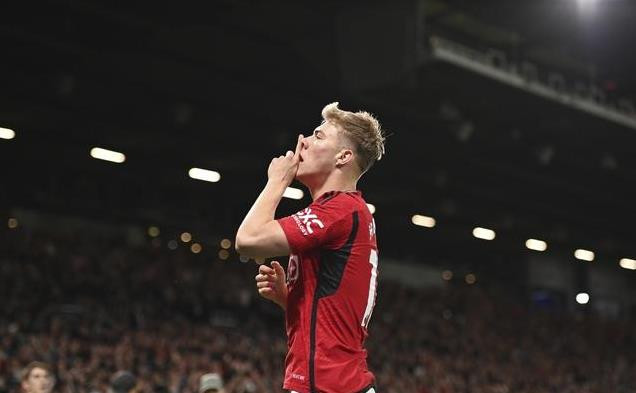 这位丹麦新星在62场比赛中打入23球,场均进球为0.37球/场,是曼联现役球员中效率最高的得分手。